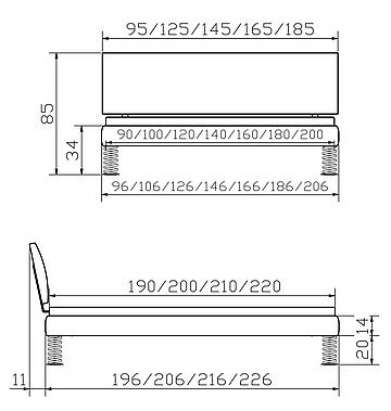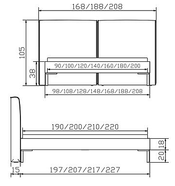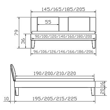 | B=160cm | 160x190 | 160x200 | 160x210 | 160x220 |